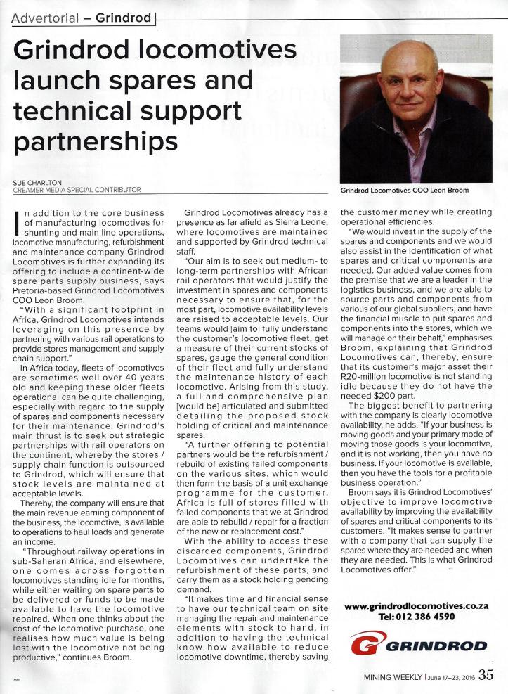 Grindrod Locomotives Engineering News June 2016 – Spares